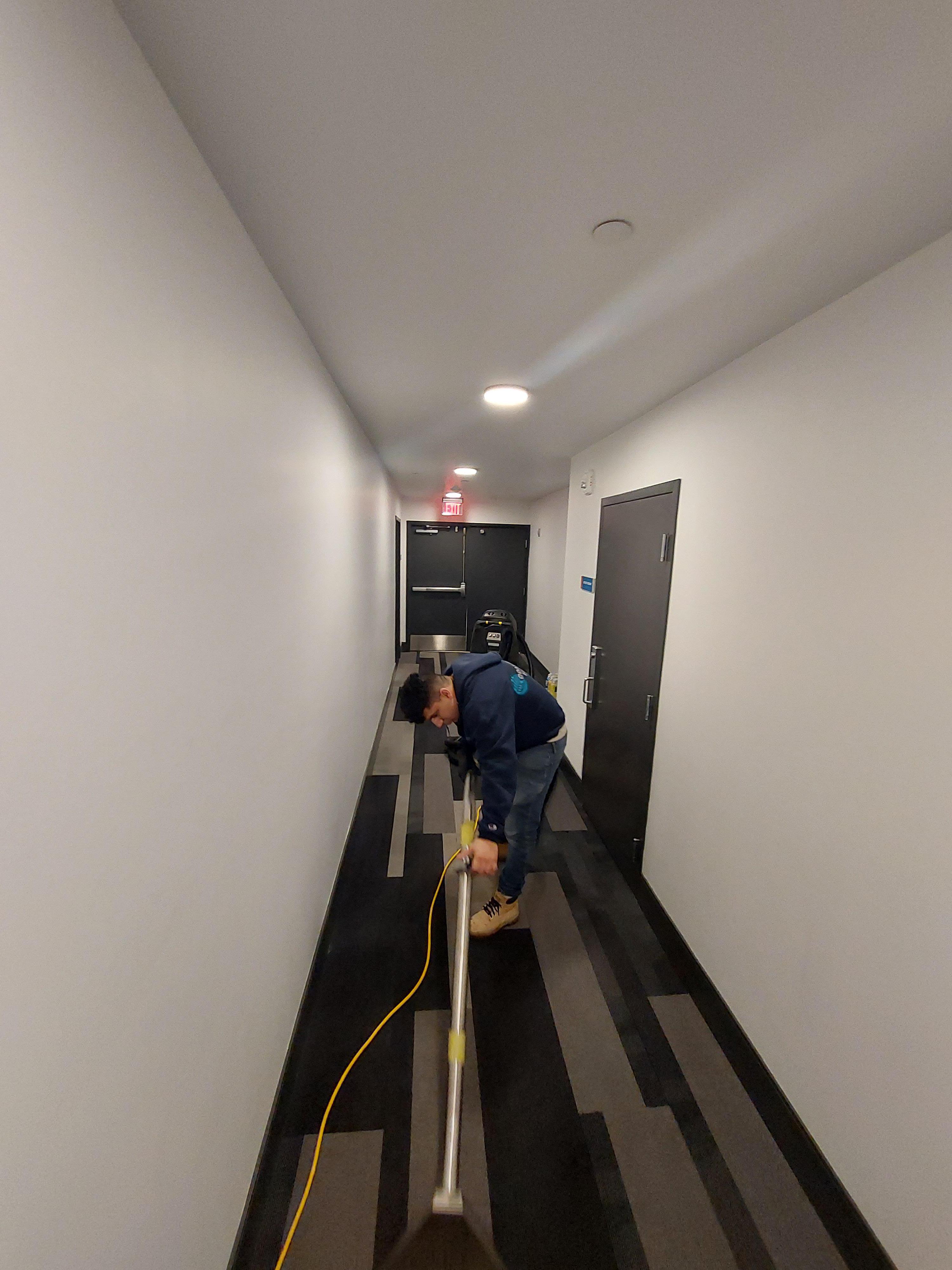 With our unparalleled expertise in addressing such emergencies, our team sprang into action, providing swift and effective solutions to remedy the situation. Our skilled professionals meticulously extracted the affected carpet using cutting-edge mobile extractors. We then employed proper cleaning techniques and solutions to thoroughly sanitize the affected concrete and handrails. To ensure optimal airflow and ventilation in the affected hallways and spaces, we strategically set up high-performance air movers.